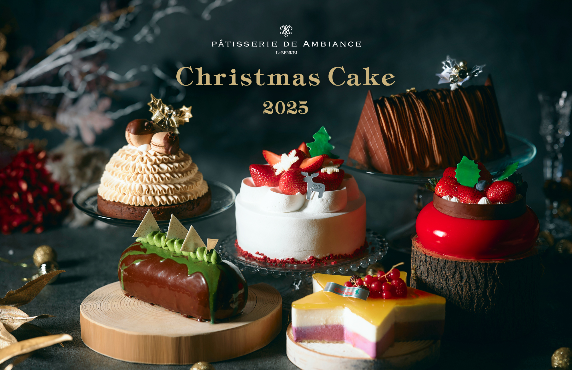 Le BENKEIのパティシエが腕を振るった個性豊かなクリスマスケーキのご紹介。生ケーキを3種類と冷凍ケーキを3種類ご用意しました。